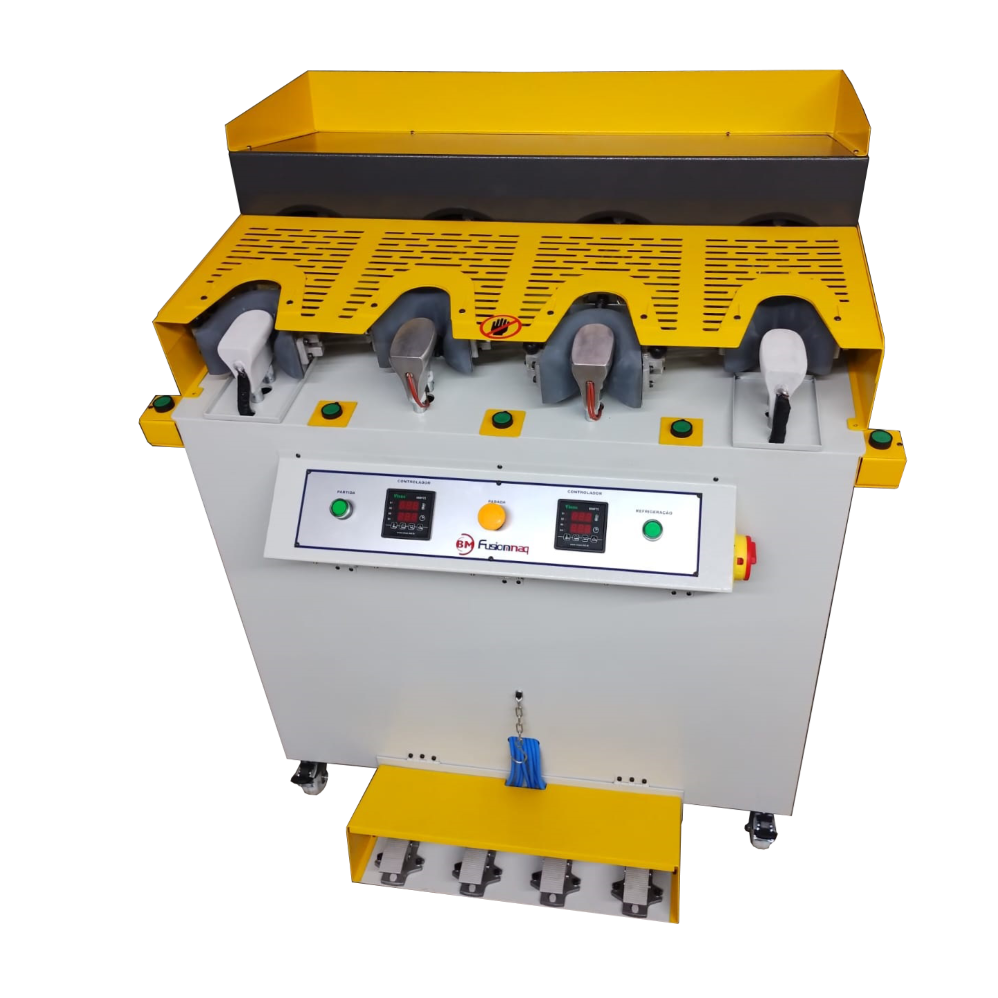 Máquina de Pré-Conformar Contraforte 1 Posto Quente 1 Posto Gelado com Chapa Quente Gabinete Aberto BM 2031 NR12